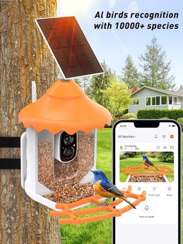 Free Store & Perfect Gift for Birding and Bird Lovers with Lifetime Guarantee- KootesDay bird smart bird feeder with camera will record the birds videos and store in the Cloud for up to 3 days loop recording, and you can extend it by subscription or Insert SD card (not included). Share lovely moments with friends or family increasing communication and bond, it is a great outdoor present for kids and the elderly