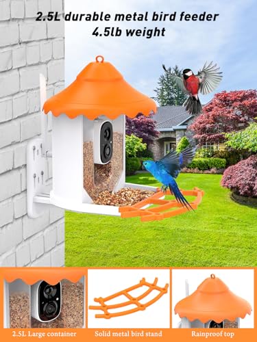 Smart Bird Feeder Camera with AI Identify Bird Species, Wild Bird Watching Cam, Live View, Instant Notifications, 5W Solar Panel