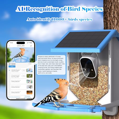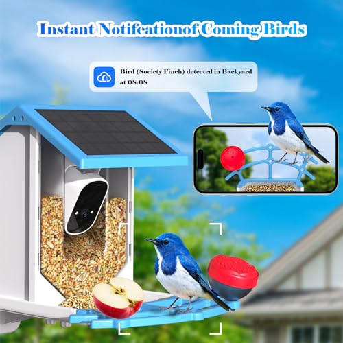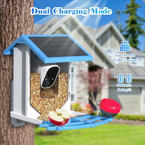 Smart Bird Feeder with Camera,Solar-Powered WiFi 4MP Live Camera,AI Identify Bird Species Auto Capture Backyard Garden Bird Watching&Motion Detection,Ideal Gift for Bird Lovers(Blue)