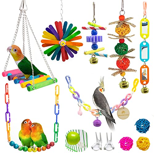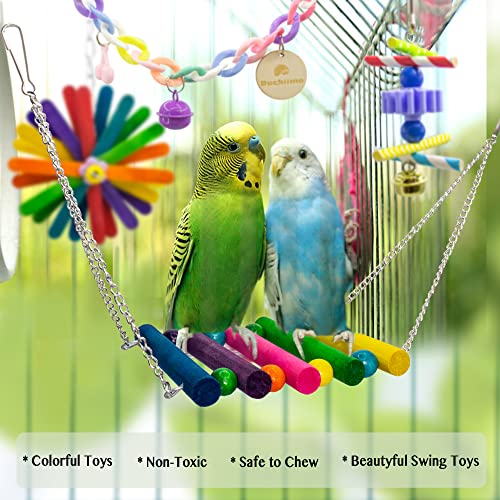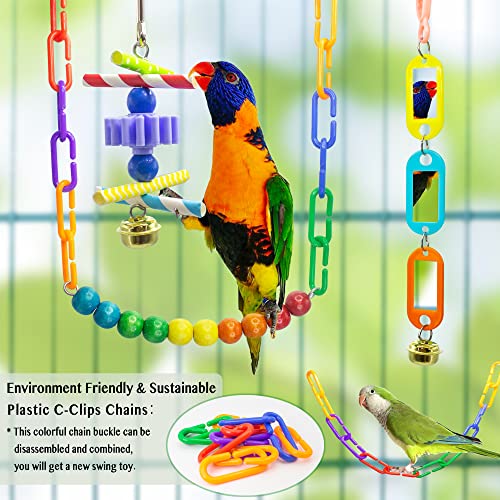 Bird Parakeet Swing Chewing Toys, Parrot Hammock Bell Toys, Bird Small Mirror Toy in cage for Parakeets, Cockatiels, Conure, Lovebirds, Budgies, Mynahs, Finches Accessories Toy (DKM0721BC02)