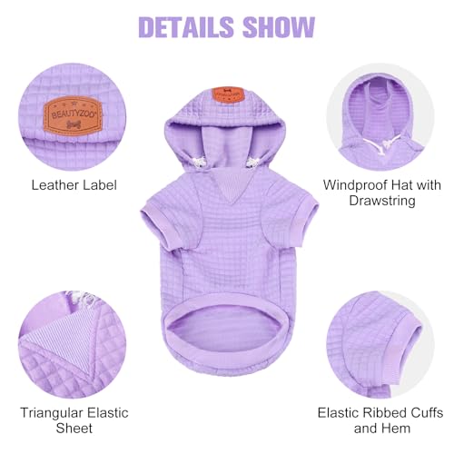 BEAUTYZOO Small Dog Hoodie Sweater with Pockets, Dog Clothes for Small Medium Dogs Boy Girl, Waffle-like Laminated Cotton Pet Coats with Hat and Leash Hole, All Weather Coat for Puppy Doggie Chihuahua