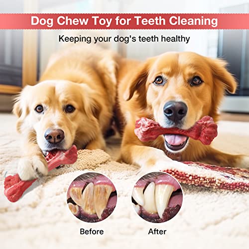 Dog Toys for Aggressive Chewers, Beef Flavor Indestructible Dog Chew Toys for Large/Medium/Small Dogs, Tough Dog Toy, Dog Bones Made with Rubber